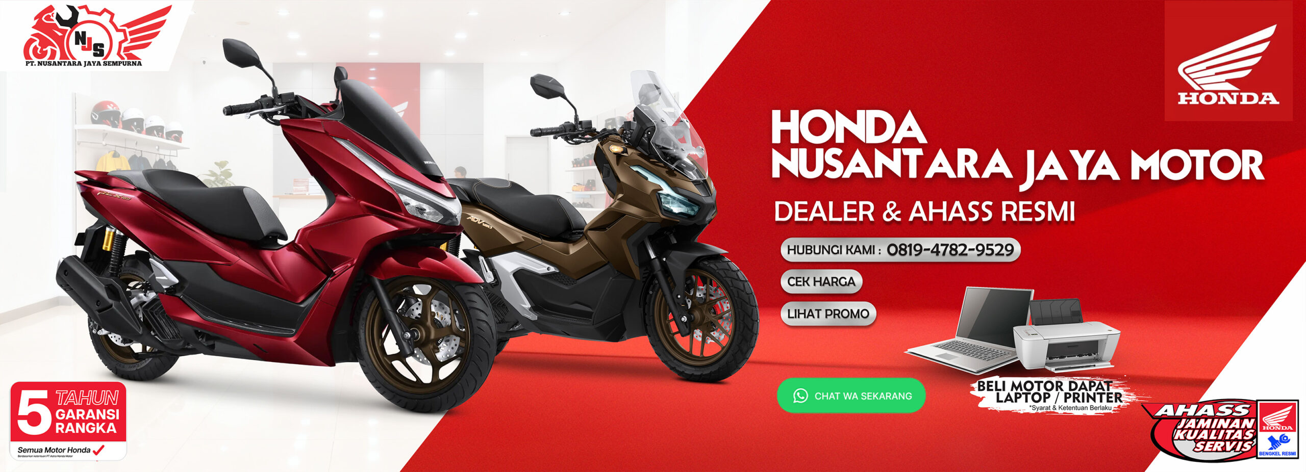 Memberikan garansi resmi sesuai dengan ketentuan Honda Indonesia.